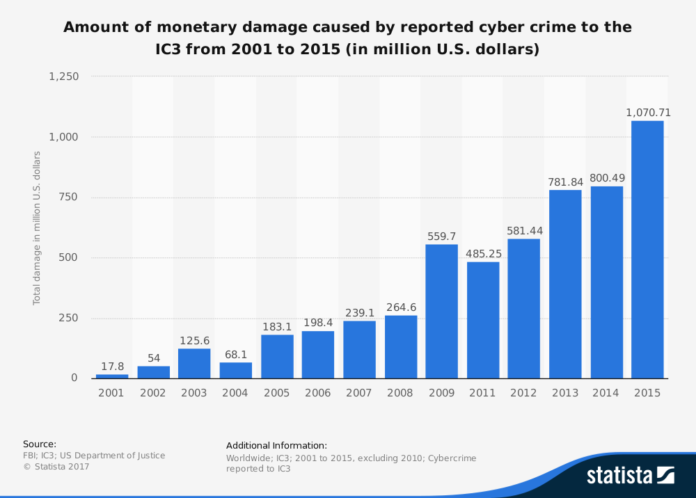 Just have a look at the way the damage that is monetary have happen by cyber crime has grown from 2001 to 2015.