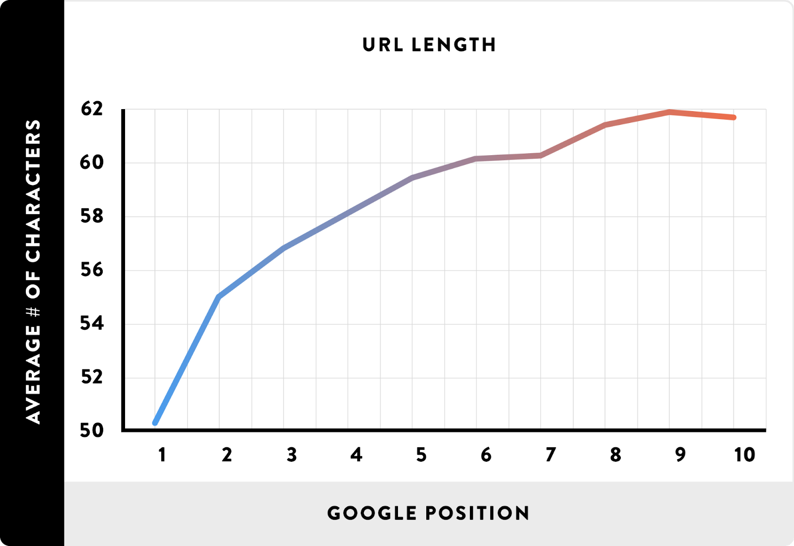 It’s a cut that is pretty dry. Notice how the top position has URLs with roughly 50 characters. But as soon as you move down seriously to the number 10 spot, the typical URL has 62 characters.